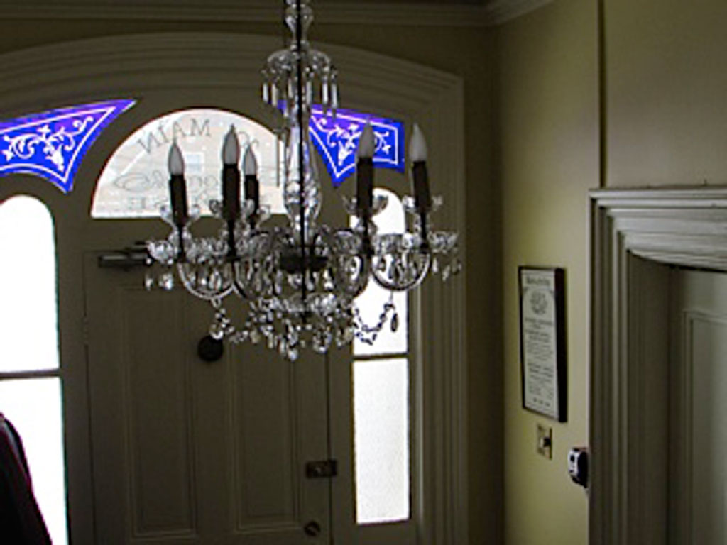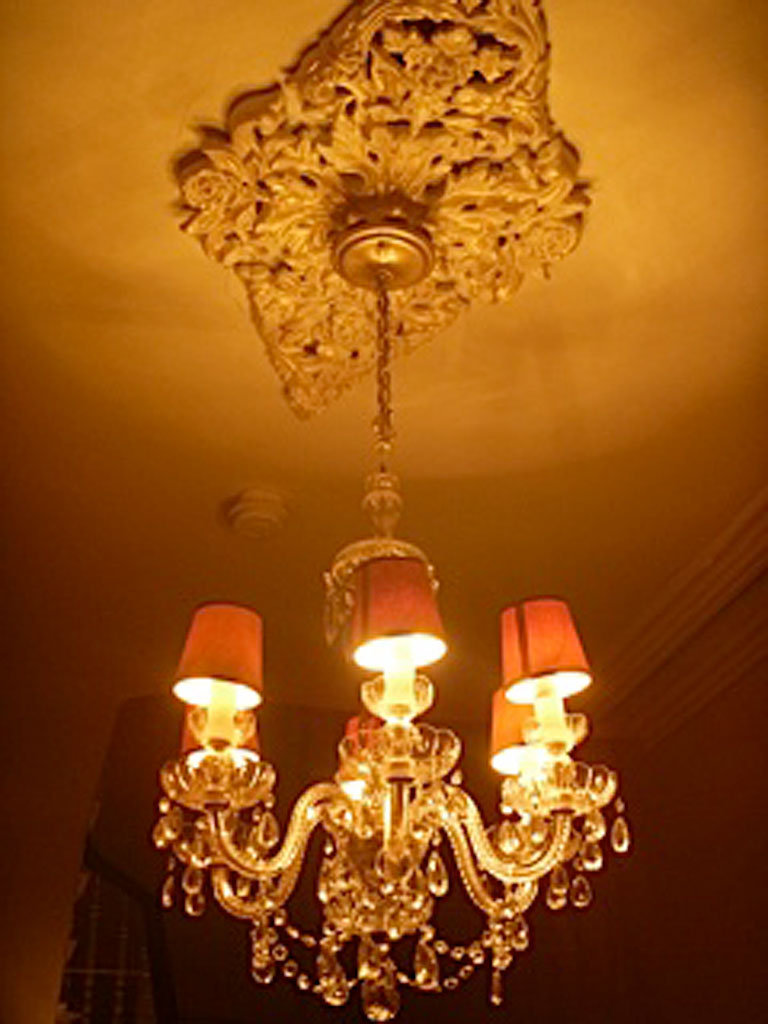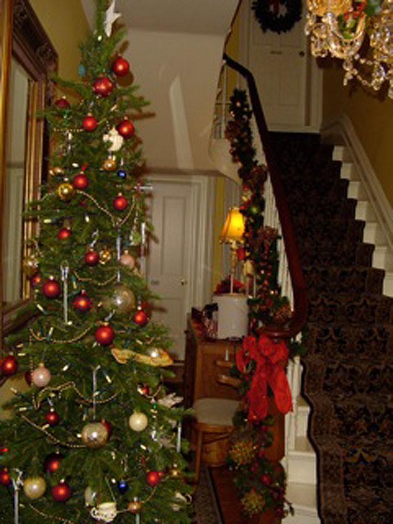 Front Hall Chandelier and l800's rosette | Telegraph House, Christmas front hall |