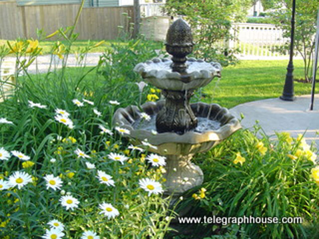 Telegraph House sign on Front lawn | Telegraph House, Summer perennials around the fountain |