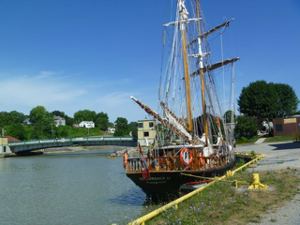 Teaching ship beside the King George Lift Bridge, Port Stanley Harbour | Lighthouse in harbour, Port Stanley |